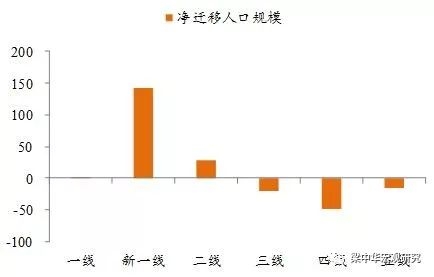 4、小城普遍净流出,谁会是下一个“鹤岗”?从城市等级来看,人口主要向新一线城市集中,而四五线城市中,有七成城市面临人口净流出。但过去几年我国小城市房地产市场却大幅上涨,长期来看将面临人口净流出、二手房市场偏小等风险。在因城施策背景下,“抢人大战”会愈演愈烈,鹤岗市的“白菜价”楼盘从长期来看或许并非个例。