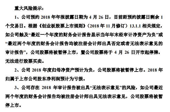 4月26日为乐视网(300104)公布2018年年报期限,距离披露年报,只剩最后一个交易日了。据此前业绩快报及预告,预计2018年营收16.04亿元,利润亏损33.37亿元,归母净利润亏损20.26亿元,基本每股收益为-0.51 元;预计2019年一季度亏损1.95亿-2亿元。