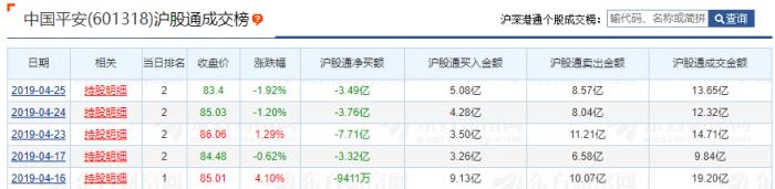 个股方面中国平安、贵州茅台、五粮液净卖出额居前,分别为3.49亿元、1.98亿元、1.97亿元。这已经是中国平安连续第五天被净卖出,4月16日至4月24日的净卖出额分别为9411万、3.32亿、7.71亿和3.76亿,5日累计净买入金额达到19.22亿元。