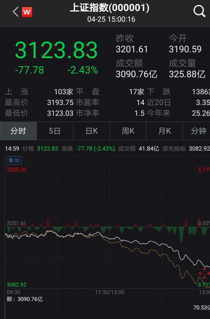 前海开源基金首席经济学家杨德龙:难得的上车机会来了。今天两市再次大跌,延续了之前的调整走势。市场站上3000元之后震荡也开始加大,之前介入较早的投资者,包括外资在近期出现了净流出。据统计,截止到4月24日,北向资金单月净流出192.34亿,创下近四年新高,此前连续五个月北向资金均呈净流入态势,外资近期获利了结加大了市场震荡。当然,现在市场的牛市格局已经形成,底部在不断抬高,3000点现在已经成为一个重要支撑位,所以这一轮儿市场下跌也会很快见底回升,对于后市还是要抱有信心,这轮调整是难得的一次上车的机会,特别是优质白马股,这是比较好的买点。