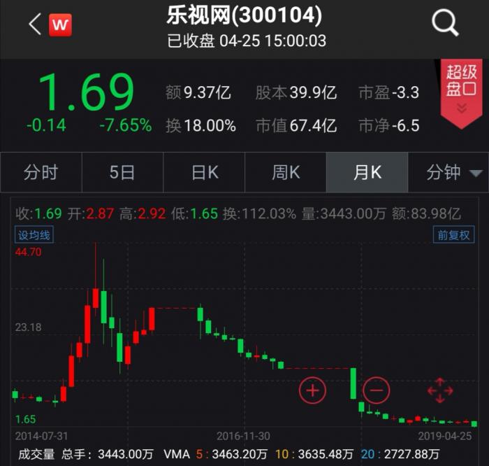 从市值最高峰的1700亿到如今跌破70亿,曾经辉煌的创业板“一哥”乐视网,如今正式迎来生死时刻。