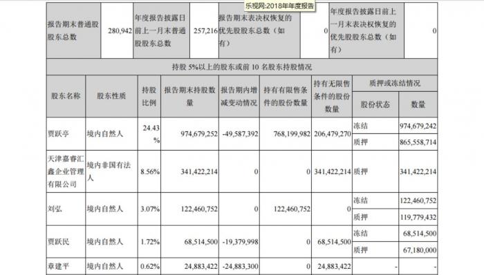 截止4月18日,贾跃亭持有乐视网9.217亿股,占公司总股本的23.10%,其中8.573亿股已质押,占公司总股本的21.49%;其所持有全部股份已被北京市第三中级人民法院等司法部门冻结、轮候冻结。同时,自今年1月中旬以来,贾跃亭累计减少乐视网股份4028万股,占总股本比例达到1%。