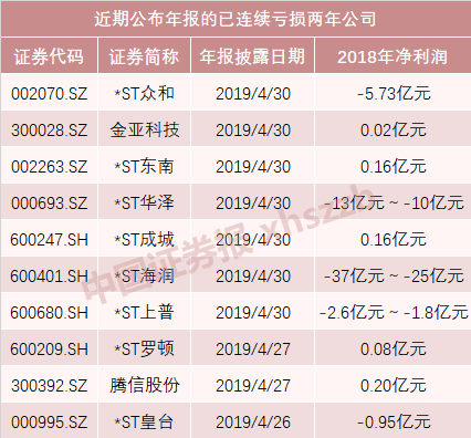 根据交易所规则,若上市公司最近3年连续亏损,将被暂停上市。数据显示,2016年、2017年已连续两年亏损的A股公司共有42家,其中*ST皇台最新年报显示其2018年仍将延续亏损。此外,还有7家公司尚未公布年报。根据此前公布的业绩预告,*ST众和、*ST上普、*ST海润、*ST华泽2018年也将延续亏损。