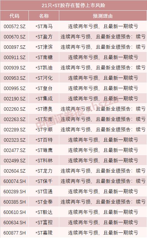 *ST股在这个月底迎来了关键期。据万得统计,截至4月27日,A股有21只*ST股存在暂停上市风险。