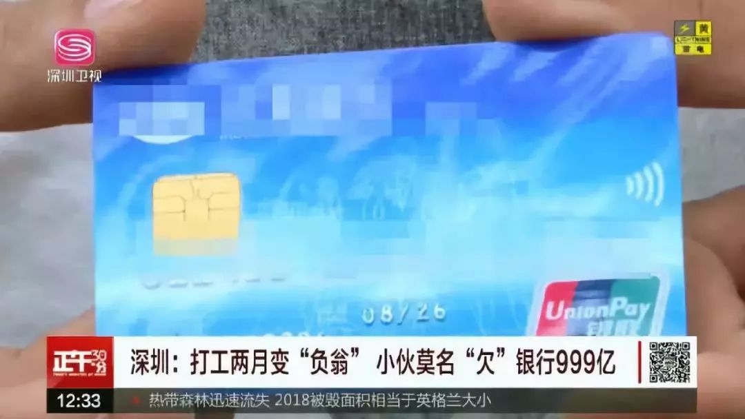 杨先生在一家公司工作2个月了,账户上本来有钱的工资卡却一直用不了,到银行一查竟然发现,自己的卡里显示欠款999亿元……这是怎么回事?
