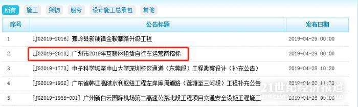 4月29日,广州公共交易资源中心挂出一则招标公告称,拟通过公开招标方式确定3家互联网租赁自行车运营商,未来3年内投放互联网租赁自行车运营配额共40万辆。