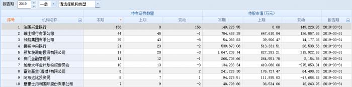 对A股上市公司的持股个数,仅次于法国兴业银行的是瑞士银行有限公司。同花顺数据显示,在已经披露2019年一季报的上市公司中,瑞士银行有限公司在一季度末共持有A股上市公司44家。