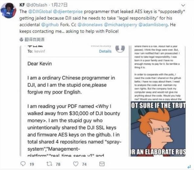 据深圳市人民检察院消息,2017年9月初,大疆漏洞举报邮箱收到一封来自安全研究员Kevin Finisterr的海外邮件:称在互联网的 GitHub代码分享社区上,发现有包含公司源代码等重要敏感信息的链接,“这件事对你们的知识产权会有巨大的影响……”众所周知,源代码意味着高新企业的财产权、竞争力乃至生命线,是公司千方百计保护的对象。
