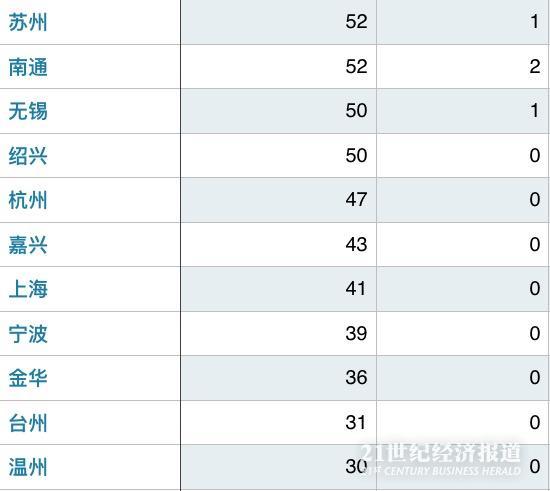 长三角地区41个城市中,上海、苏州、杭州等29个城市完成了两个目标。