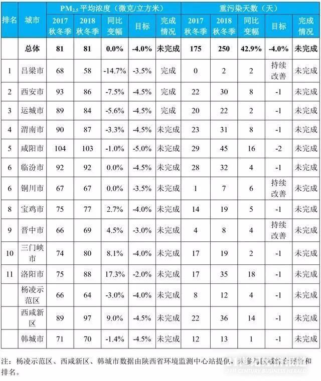 《汾渭平原2018-2019年秋冬季大气污染综合治理攻坚行动方案》空气质量目标完成情况