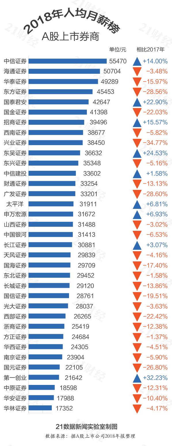 具体来看,虽然2018年A股跌幅明显,但是券商人均薪酬依然最高,人均35604元/月的水平已经足够吸引人了?不,还有2家券商人均月薪超过5万!这里再提醒一下,这是已经剔除了高管薪酬的数据。不过相比2017年多数券商还是降薪明显。