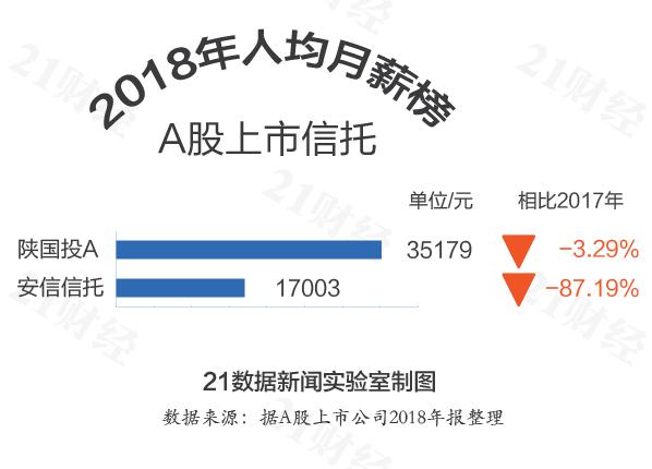 说到月薪,就免不了提到安信信托(600816.SH),此前连续月薪十万的新闻让它一直是人们眼中人少钱多的“金饭碗”,不过2018年或许是受业绩大亏18亿的影响,绩效薪酬下降明显,人均薪酬已从2017年的每月132690元跌至17003元,简直冰火两重天!