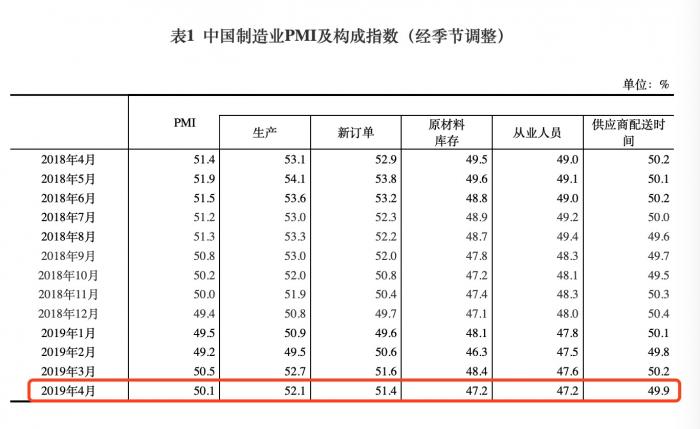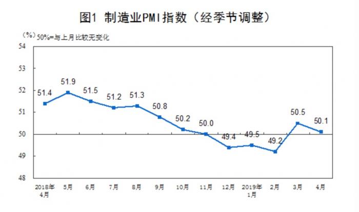 4月30日,国家统计局发布数据,4月份中国制造业采购经理指数(PMI)为50.1%,比上月回落0.4个百分点,继续保持在扩张区间。