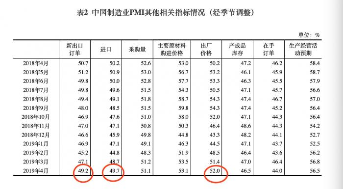 区别于上述5个分类指数全线回落,在PMI其他相关指标中,包括新出口订单、进口、出场价格指数则有所回升。