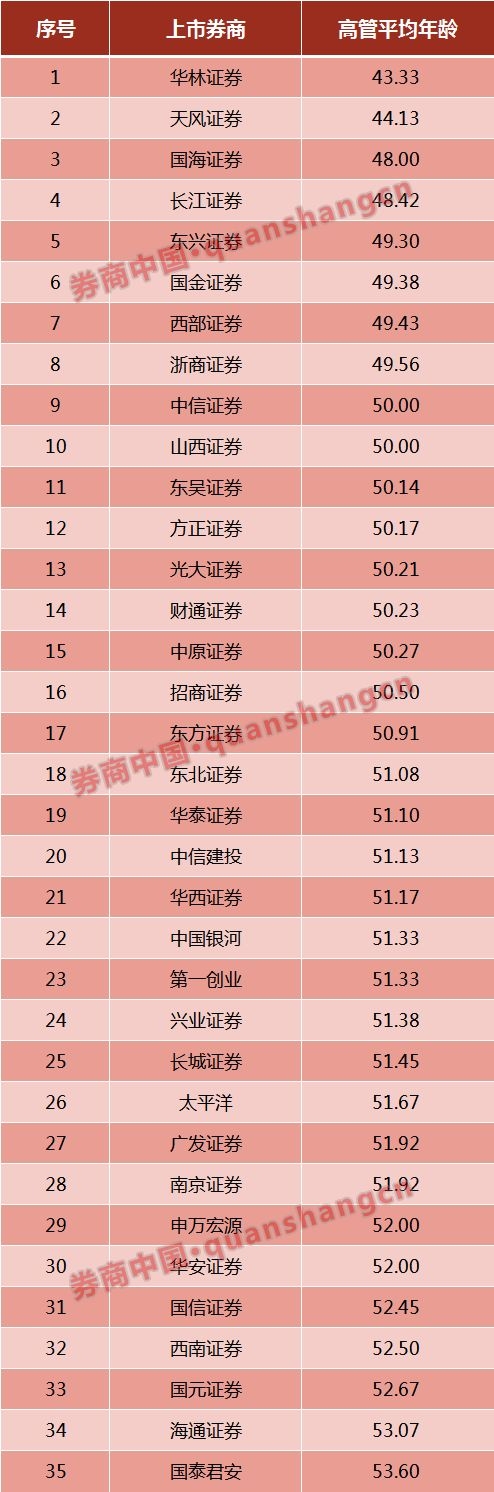 华林天风高管平均不足45岁,中信成高管最年轻大型券商