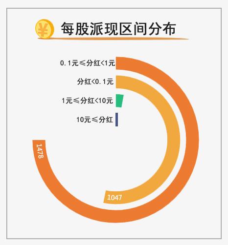 从分红数额方面来看, 2018年A股每股派现的平均值为0.1956元。大部分仍居于0.1元~1元区间内,累计共达1478家,占比57.22%。