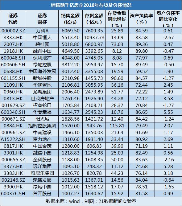 上市房企2018年成绩单:哪几家最赚钱?14家千亿房企负债率超80%,去化压力大