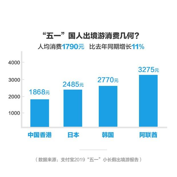 支付宝今日公布的2019“五一”小长假出境游报告显示:今年“五一”出境游依然火爆,人均使用支付宝消费金额近1800元,比去年增长逾一成。