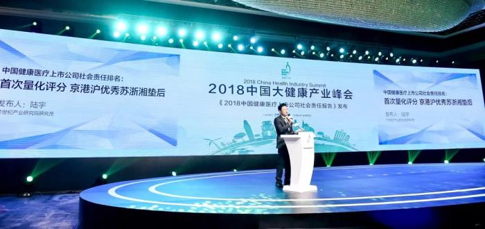 在2018年《21世纪经济报道》主办的“中国大健康产业峰会”现场,报社发布《中国健康医疗上市公司社会责任报告》,首次创造了医药健康企业社会责任的量化评价系统,以经济绩效和市场表现、员工权益、环境保护等七大指标为审核维度,对在A股、H股上市的300多家医疗上市公司践行社会责任的行为进行研究评点。