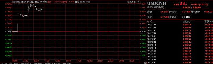 据中国外汇交易中心网站消息,5月6日人民币对美元汇率中间价为6.7344元,下调58个基点,创2月20日以来新低。离岸人民币兑美元急速走低,跌破6.80关口,一度冲至6.82105,不过随后缓降,截至发稿,离岸人民币兑美元报6.8001,跌0.98%。美元指数在高位徘徊,截至10点报97.523,上涨0.1%。
