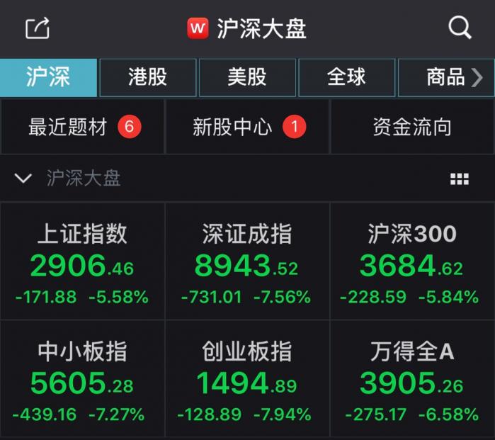 5月6日开盘,沪深指数双双低开。沪指低开100点直接击穿3000点,随后续走低,午后开盘更是跌破2900点,盘中最低更是达到了2876.47点。临近收盘,跌幅有所收窄,艰难守住2900点,但全天跌幅仍然达到了5.58%。