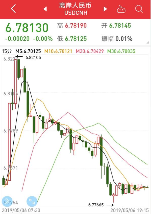 不过,到了下午,离岸、在岸人民币则出现持续拉升。其中在岸人民币兑美元跌幅缩窄至250个基点,触及日高6.7620,而盘中一度跌超600个基点。离岸人民币兑美元收复6.78关口,较日内低位反弹逾400个基点,跌幅缩窄至450个基点。