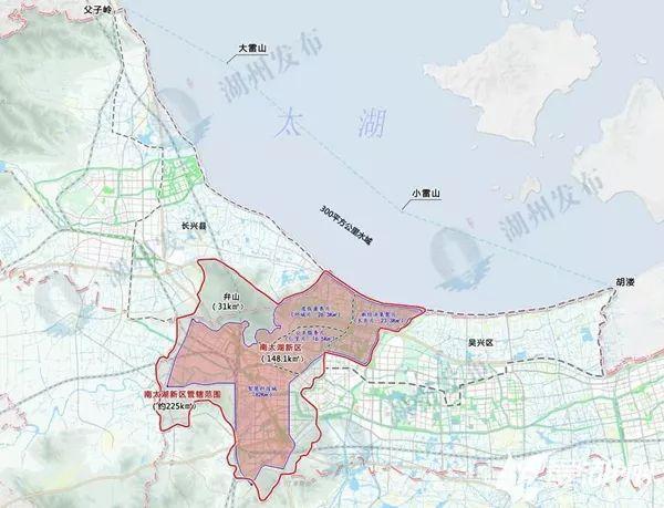 公开资料显示,湖州南太湖新区规划控制总面积225平方公里,空间范围包括现湖州南太湖产业集聚区核心区,湖州经济技术开发区、湖州太湖旅游度假区全部区域,湖州市吴兴区环渚街道5个村,以及长兴县境内的部分弁山山体。