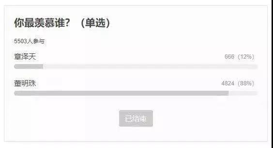投票结果相差悬殊,88%的人最羡慕,也最想成为董明珠。