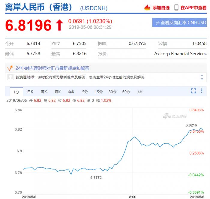 华尔街陷入新一轮恐慌!美股道指期货一日暴跌450点,离岸人民币急贬失守6.8关口