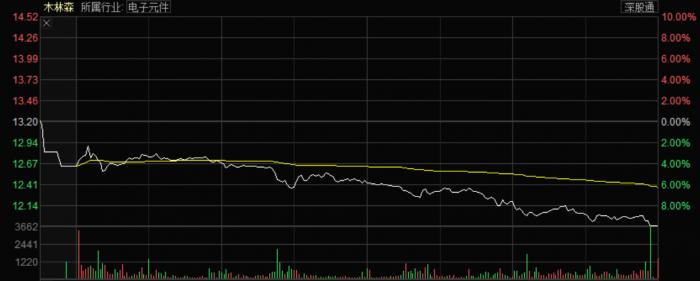 5月6日,受中美贸易摩擦消息冲击,A股市场遭遇“黑色星期一”,三大股指集体重挫,其中上证指数大跌5.58%,深成指暴跌7.56%,创业板指暴跌7.94%。木林深股价低开低走,收盘跌停,报11.88元。