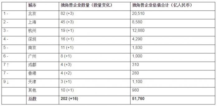 此次上榜的202家独角兽企业整体估值总计超5万亿人民币,北京依旧是占据独角兽企业最多的城市,合计有82家企业上榜,占上榜企业总数的40.6%;上海和杭州分列二三,独角兽企业数量分别达到45家和19家;深圳和南京以16家和10家位列四五位。