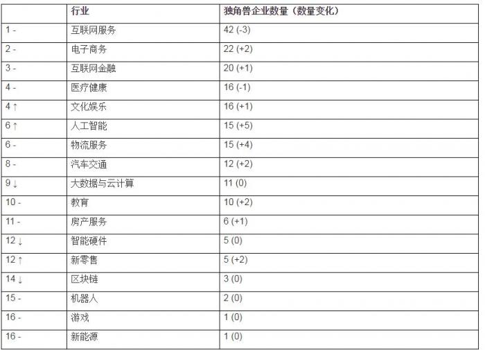 独角兽最多的行业:互联网服务行业、电子商务、互联网金融