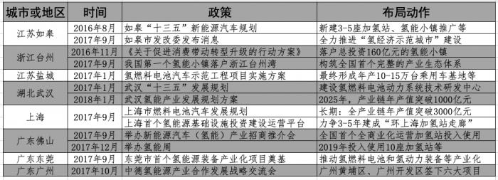 从时间上看,各地布局氢能产业最早起步于2016年,并在2017年形成趋势,彼时主要集中在江苏如皋、苏州,浙江台州,湖北武汉,广东佛山、广州,上海等城市和地区。
