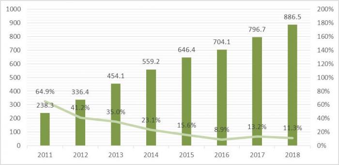 图1:中国国际服务外包业务规模发展情况 单位:亿美元