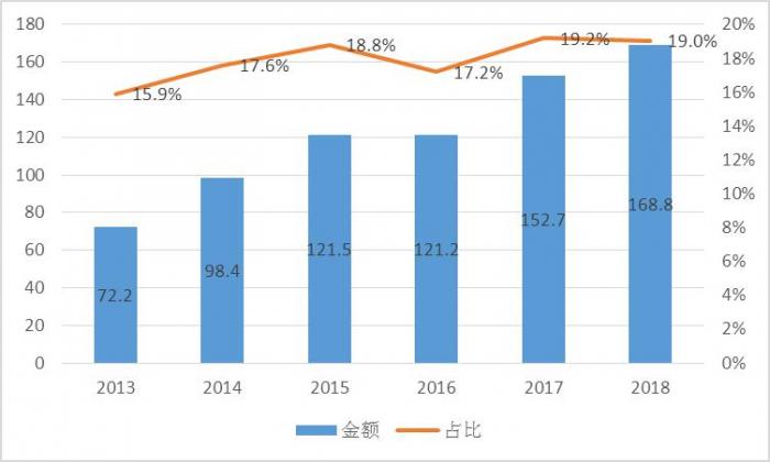 值得注意的是,自2013年以来,中国承接“一带一路”沿线国家服务外包业务规模增长一倍以上,占中国国际服务外包业务比重由15.9%提升至19.0%。2018年中国企业承接“一带一路”沿线国家的服务外包合同执行额1117.1亿元人民币,同比增长约10.5%。