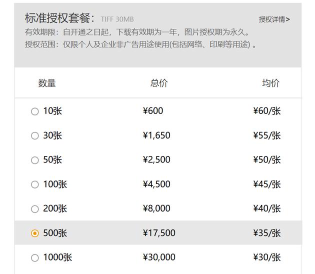 而全景网络在官网显示,200张图片购买套餐总价8000元,单价40元;500张图片总价17500元,单价35元。显而易见,全景网络索赔的价格远远高于其正常销售价格。
