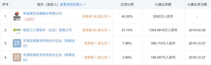 近日,据天眼查数据显示,北京六间房科技有限公司高级管理人员发生变更, 创始人刘岩卸任北京六间房科技有限公司董事长职位,仍担任经理及法定代表人。周鸿祎成为新任董事长。六间房科技新一届董事会包括5名董事和2名监事。该公司大股东仍为宋城演艺发展股份有限公司和奇虎360软件(北京)有限公司,分别占比40%和27.1%。