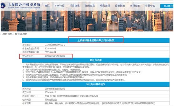 日前,上海联合产权交易所最新公布的一则产权交易信息显示,上海国际信托有限公司拟转让上投摩根基金管理有限公司2%股权。