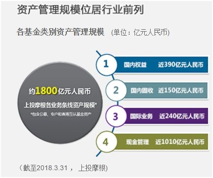 根据公司官网信息,截至2018年一季末,公司业务条线资产规模近1800亿元,服务个人、机构客户近1000万。