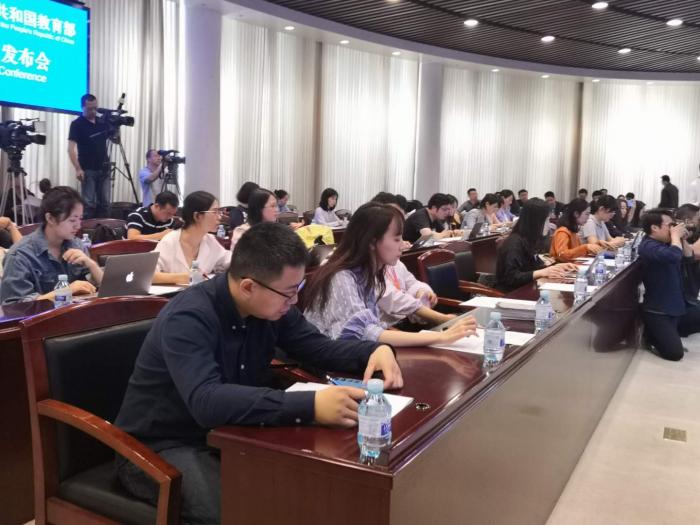 (教育部5月8日新闻发布会会场,王峰摄)