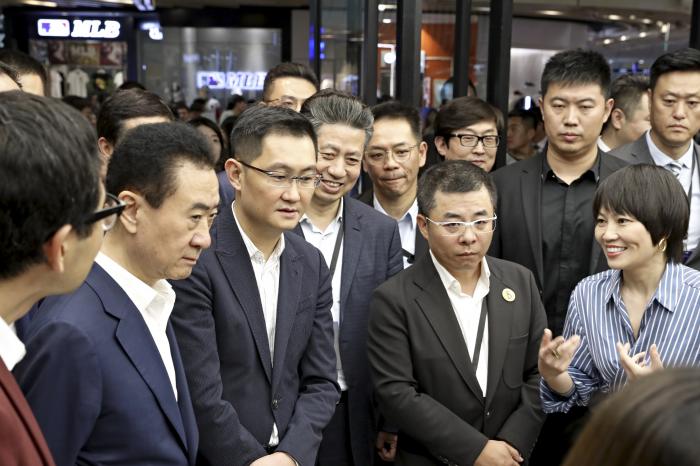 5月8日下午,马化腾、王健林来到北京丰台科技园万达广场逛街。