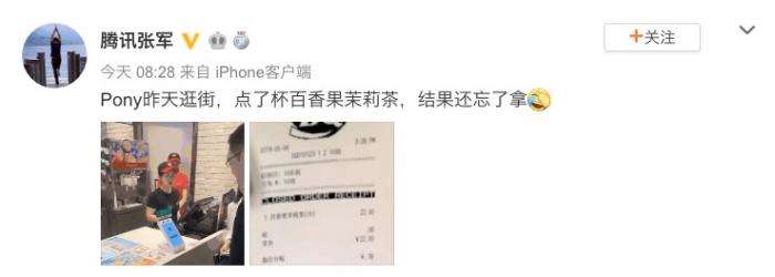 马化腾就刷脸支付点了一杯百香果茉莉茶,结果忘记拿了。