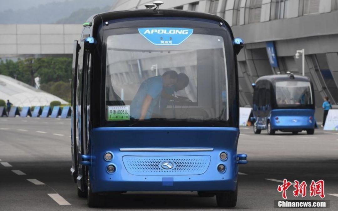 资料图:2018年,中国首款商用级无人驾驶巴士开放试乘体验。中新社记者 张斌 摄