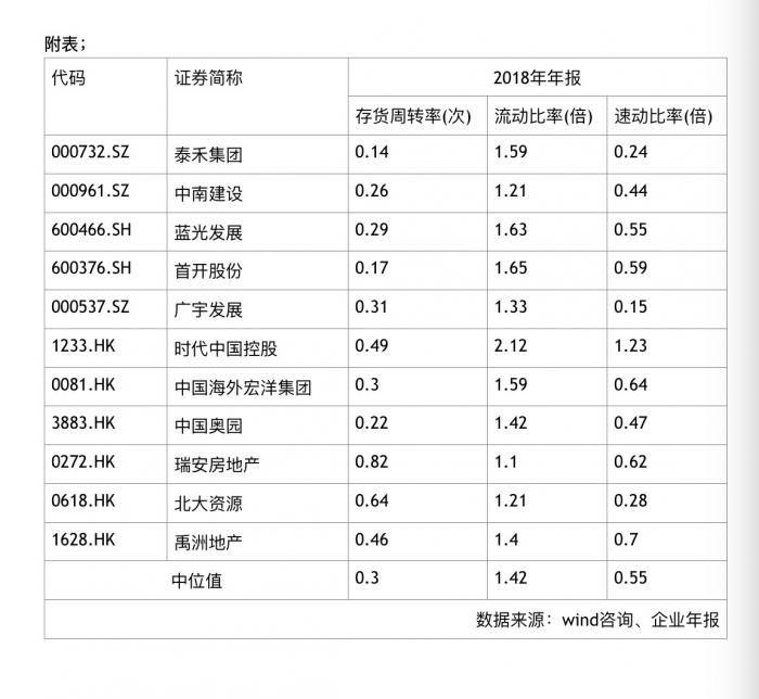 另外选取与泰禾集团收入相邻的10家Wind房地产开发行业房企的这三项比率与泰禾进行对比,11家房企的存货周转率中位数为0.3,流动比率中位数为1.42,速动比率中位数为0.55。在11家房企存货周转率,流动比率,速动比率从高到低排名中,泰禾集团分别排在第11、第5和第10。