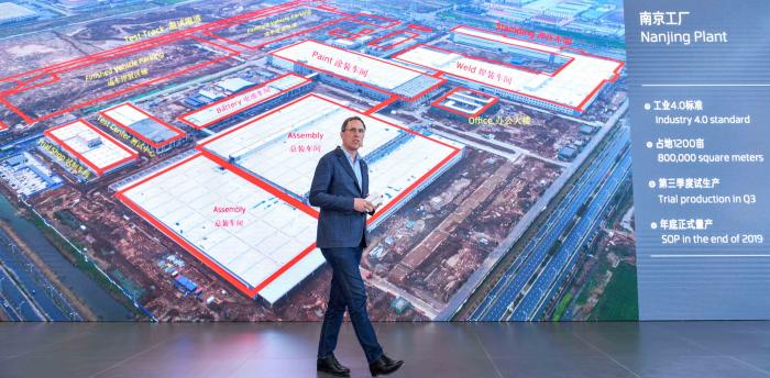 据了解,拜腾南京工厂占地1200亩,总投资逾110亿元,按照“工业4.0”标准进行建设。工厂一期工程于2017年9月奠基,其冲压、涂装、焊装、总装、电池五大厂房目前已进入设备安装、调试阶段,将于第三季度开始试生产。该工厂规划总产能30万辆,一期项目规划产能15万辆。