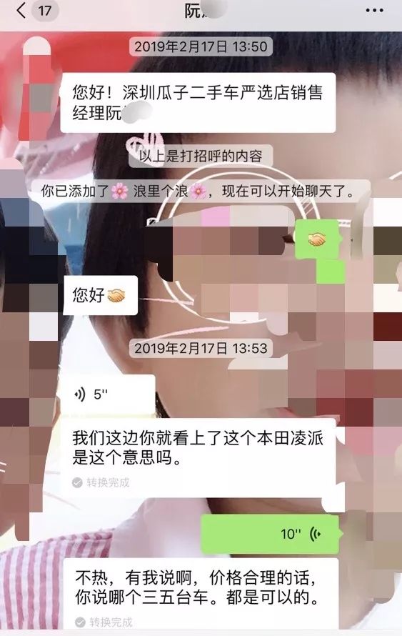 今年2月份,黄先生通过瓜子二手车APP认识了一名阮姓销售。对方加了黄先生的微信,并表示自己是深圳瓜子二手车严选店的销售经理,负责与黄先生对接购车事宜。之后,黄先生便约了阮经理一起到位于龙岗平湖的瓜子严选店看车,并在当天就付了服务费定了几台车。