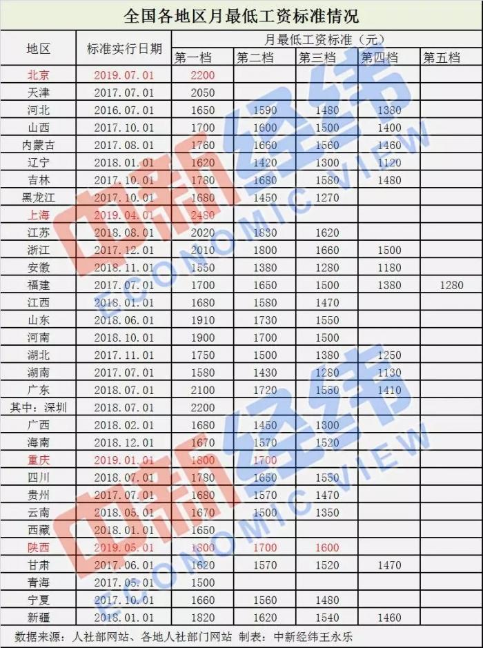今年以来明确调整最低工资标准的地区至少有上海、北京、重庆、陕西等4省市。