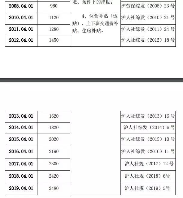 △近10年上海市企业职工最低工资标准汇总/上海市人力资源社会保障网截图