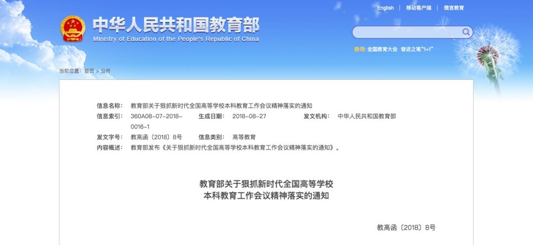 同年,教育部下发《关于狠抓新时代全国高等学校本科教育工作会议精神落实的通知》,再次强调各高校要全面梳理各门课程的教学内容,淘汰“水课”,打造“金课”,严把毕业出口关,坚决取消“清考”制度。