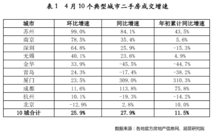 不过,苏州等热点城市则延续了3月的“小阳春”热度,二手房成交量继续反弹。